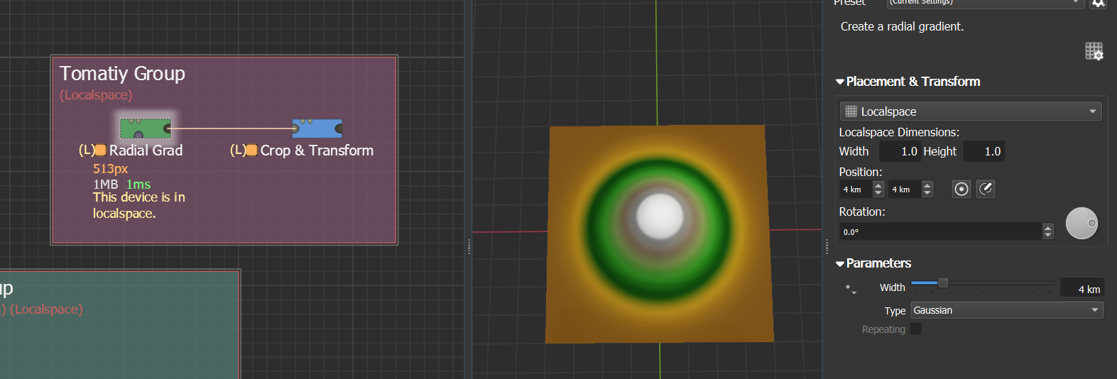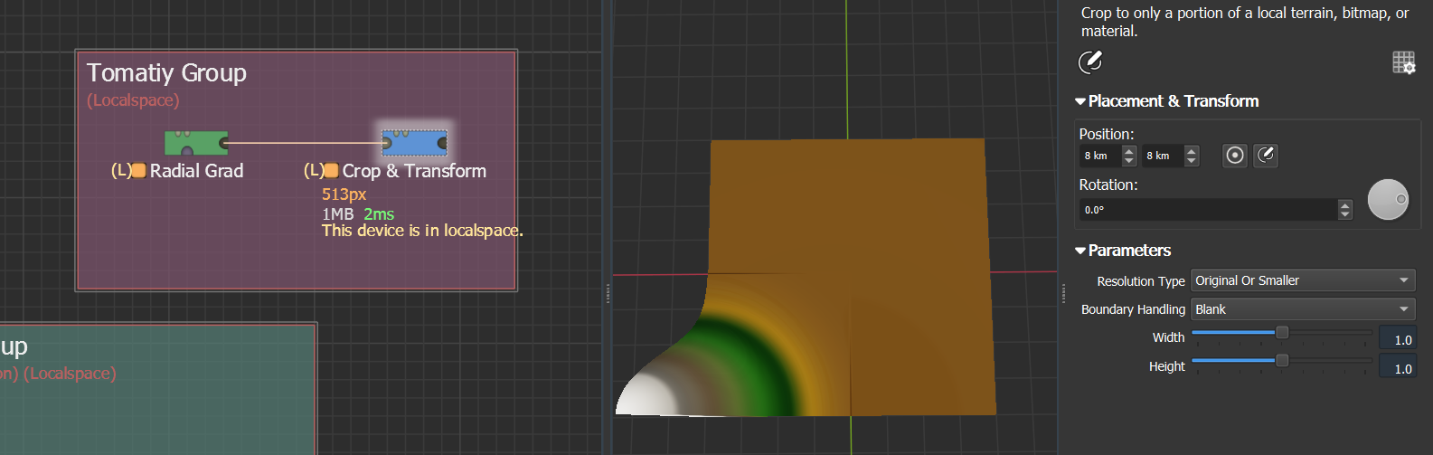The node Crop & Transform are using Position 0,0 instead of 4km,4km……