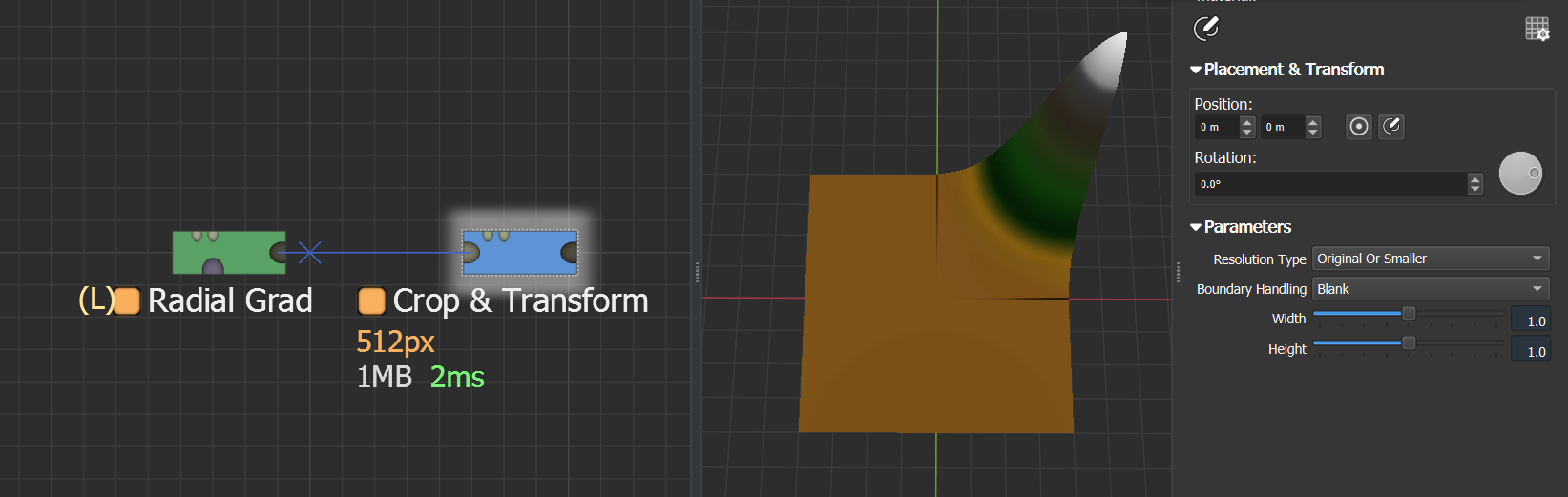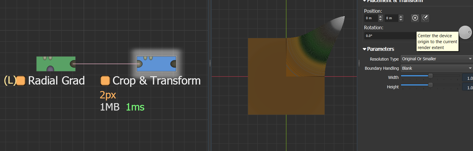 For example, your project will break localscape position, if you will make you nodes to be 2.0 LocalSpace. Center button will work inside Radial grad - but will not work in CropTransform