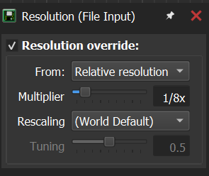 If you input any file, into localscape, File Input will use resolution of that file, and will ignore custom provided setting on build