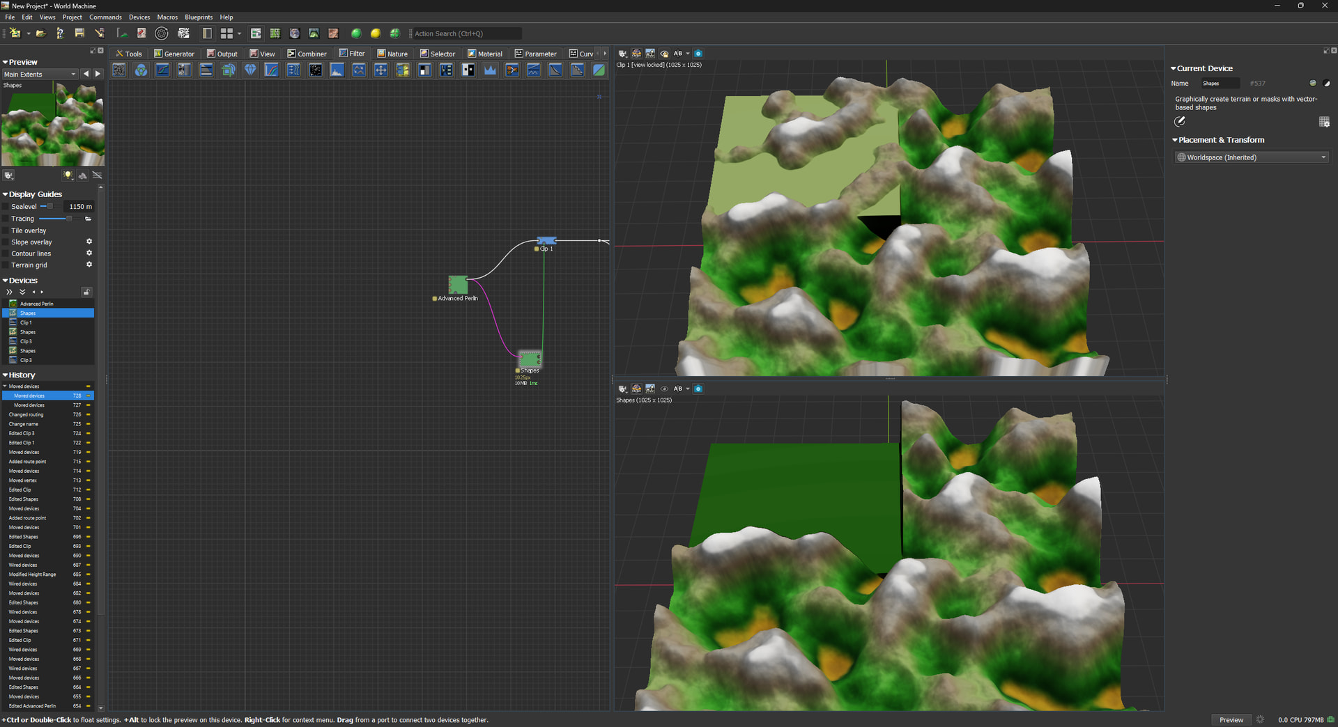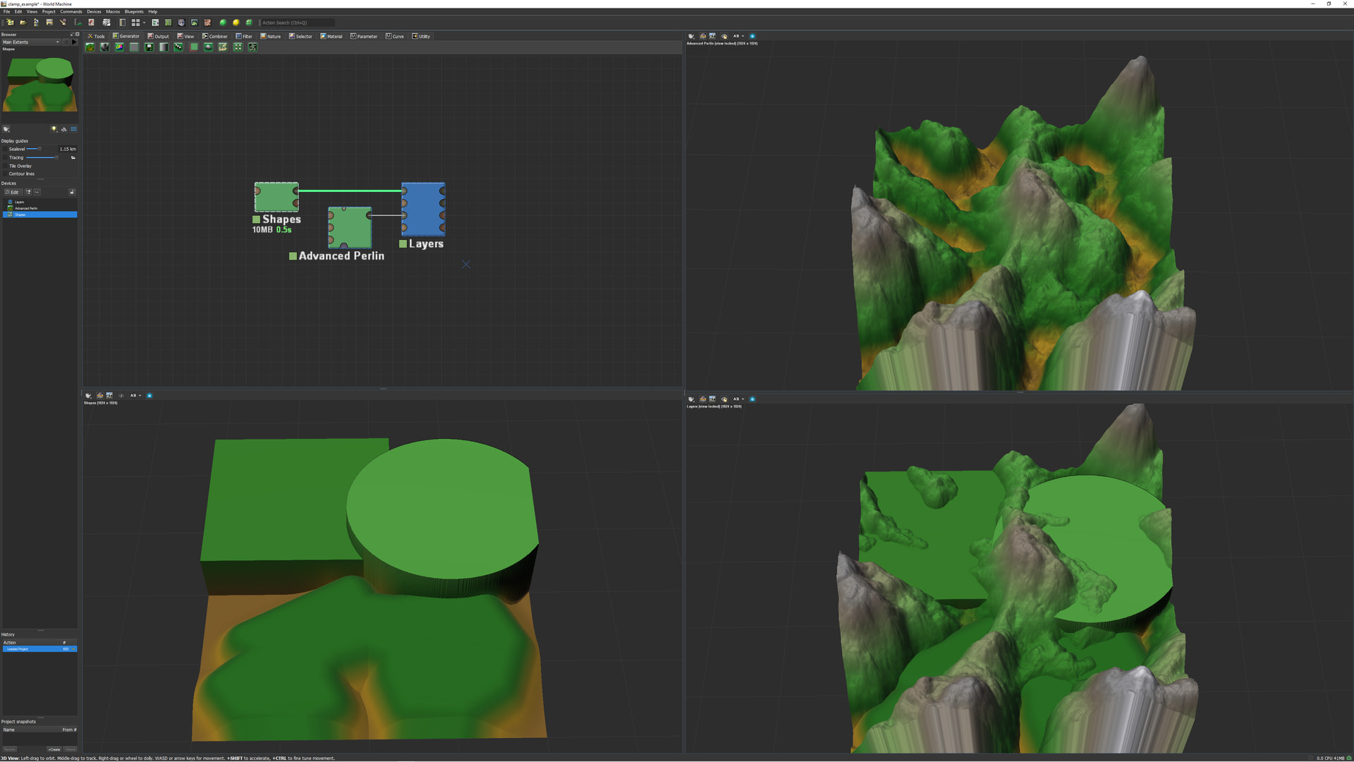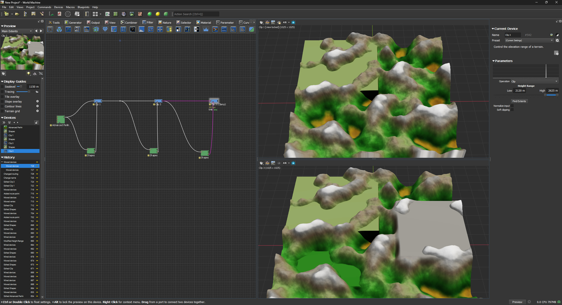 Top right is CLAMP/CLIP.. I want to create a flat area around the mountain.