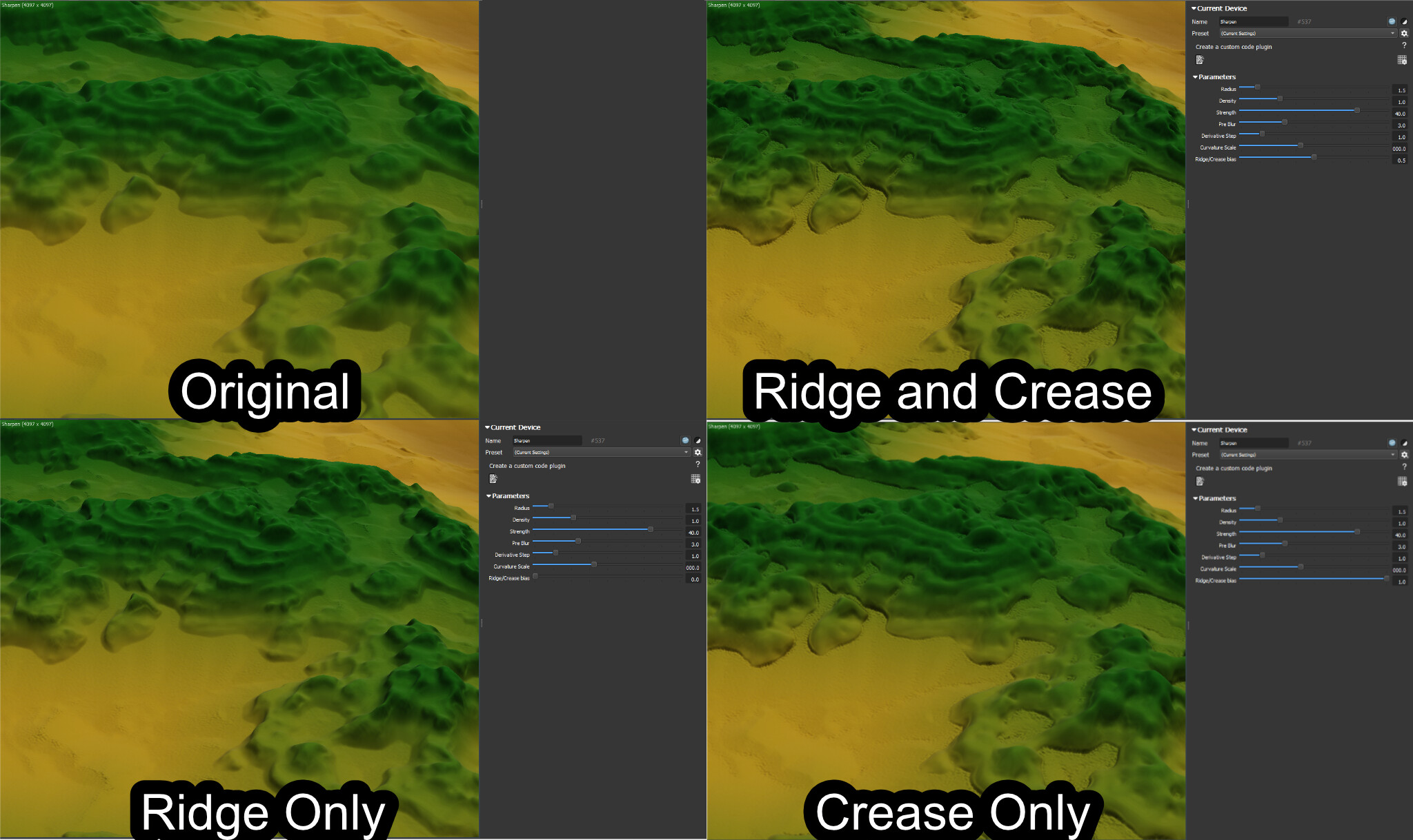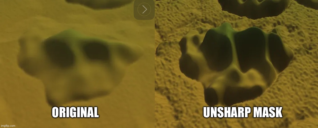 Playing around with what i can get the code block to do. My current goal is something like a ridge/creases aware sharpening. I got the first step working last night which is an unsharp mask, there are issues with using “just this” so more finagling. I will be working on it tonight detecting the ridge vs crease so it can sharpen only the ridges or creases or both, as well as only sharpening where a ridge/creases are. Next step after that is playing with eigenvectors to only sharpen “along” the ridge or crease rather than just a blob in the area. I’ll post my progress tonight on it. (Images are only unsharp masking step so far, see how it greatly exaggerates the features outside of the crease area making the rock taller locally as well as blowing up the talus “sand texture” )