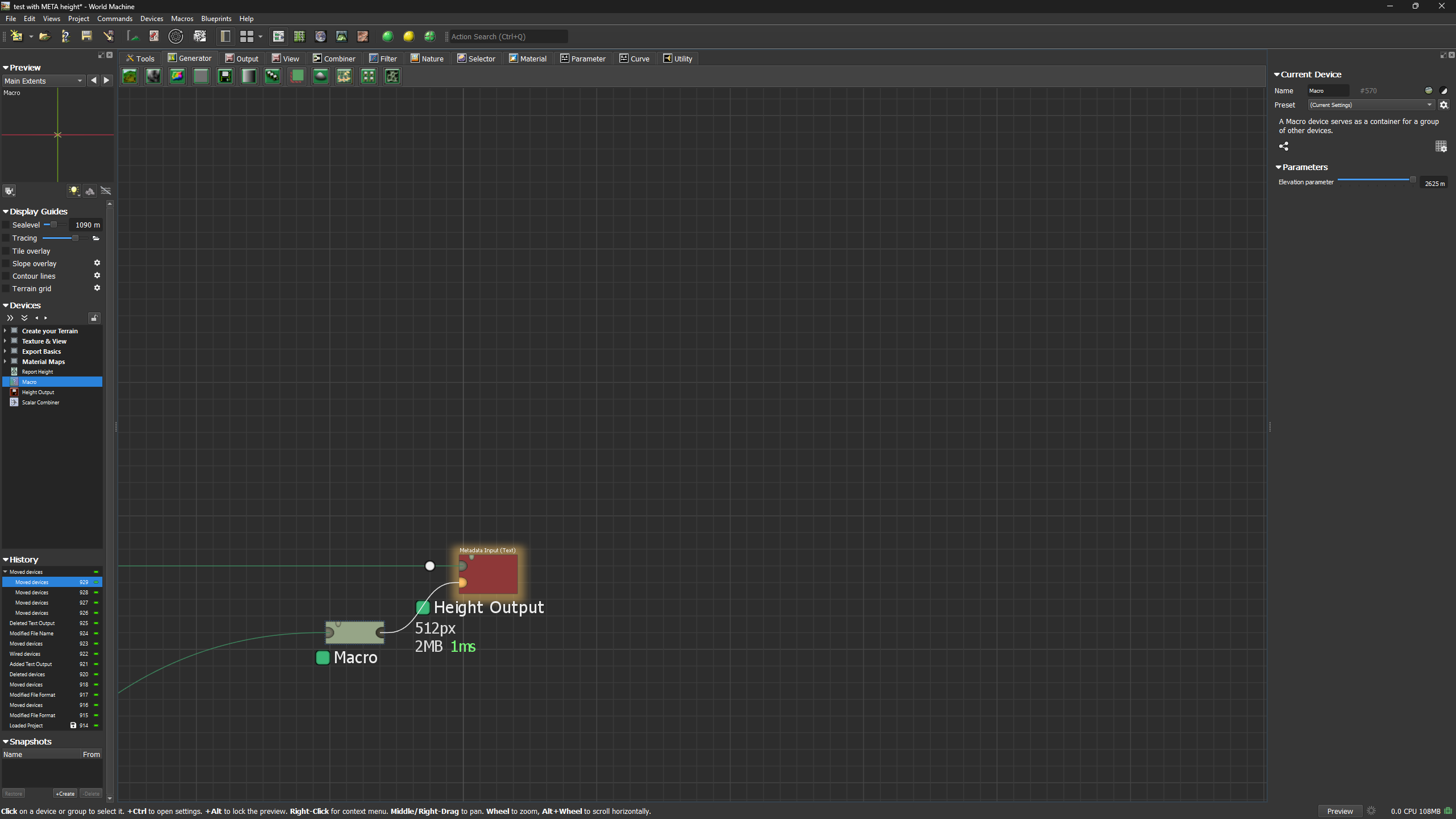 How do I use Metadata input on the Height output nod?
