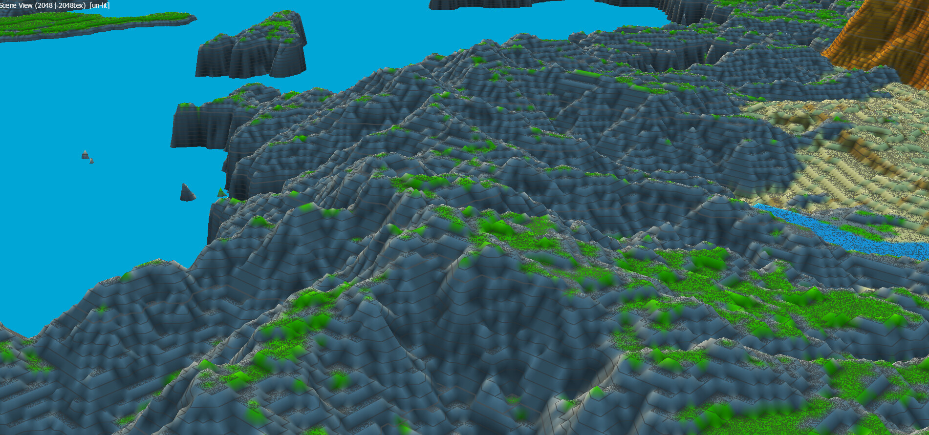 It WOULD be possible to write a code device plugin that takes a heightfield and outputs a mesh with sharp edged features. Not at the moment, in 4050, as this would require support for the mesh datatype in the code device - but that is a planned feature for the next version.