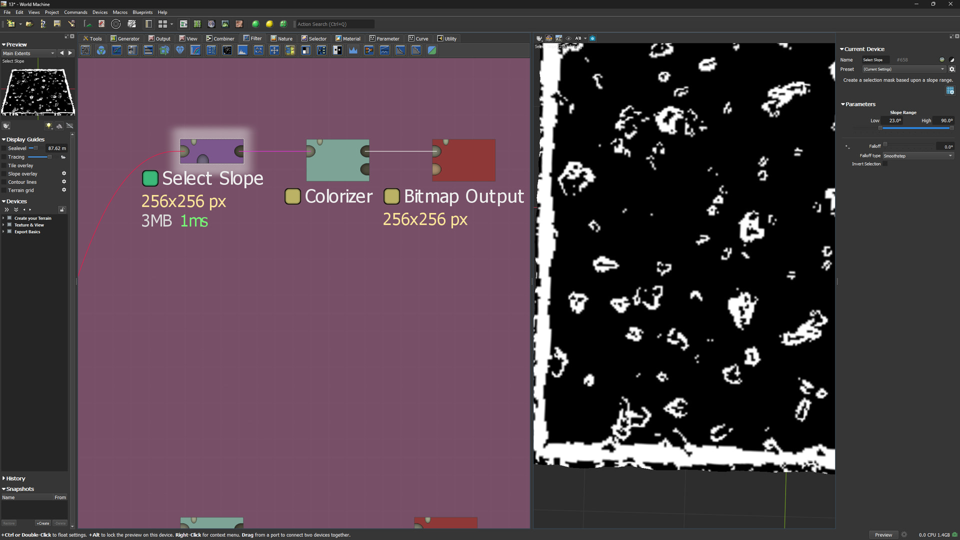 Your “slope selector” controls your gradient, reduce falloff to zero, set it to linear for a good measure, then set your slope selection.